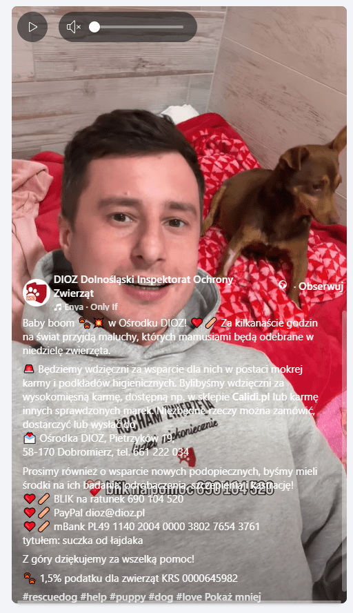 Zdjęcie mężczyzny leżącego z psem, apel o pilną pomoc, numer BLIK, PayPal, konto bankowe – wszystko podane w jednym poście na TikToku. Tak wygląda codzienność komunikacyjna DIOZ, czyli Dolnośląskiego Inspektoratu Ochrony Zwierząt. Organizacja zbiera miliony złotych rocznie, operuje na skalę ogólnopolską i buduje wizerunek niezastąpionego ratownika czworonogów. Tylko że za tym wizerunkiem kryje się coraz więcej pytań, na które DIOZ nie chce – albo nie potrafi – odpowiedzieć.